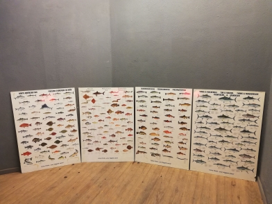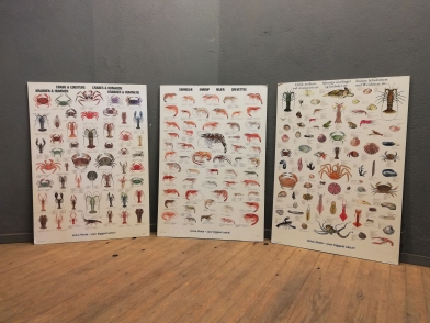 Colecção de 7 cartazes de animais marinhos impressos em cartão.