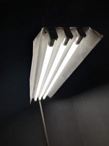 Armaduras / luminárias provenientes de uma antiga fábrica textil dos anos 60.