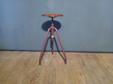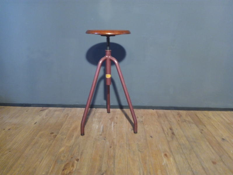 Banco de Arquitecto com fuso em rosca "sobe e desce". Estrutura tubular metálica e tampo original em madeira maciça. Estado impecável. Patina original.