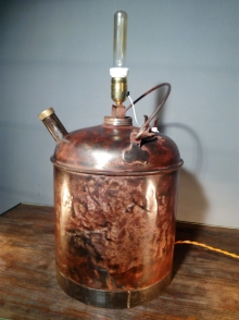 Candeeiro de mesa feito a partir de uma antiga bilha de gasolina dos anos 50
