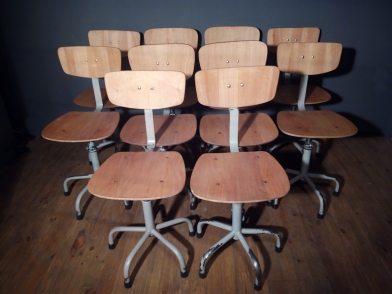 Cadeiras de operária fabril provenientes de uma antiga fabrica de calçado.