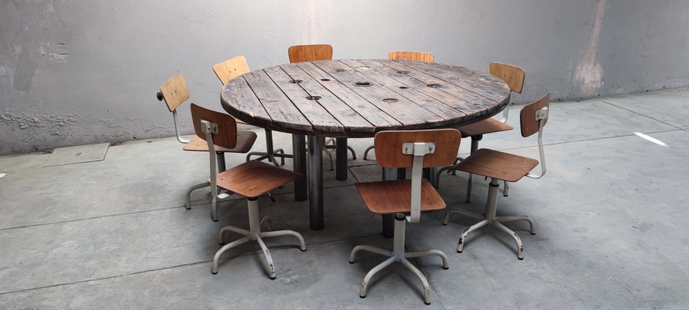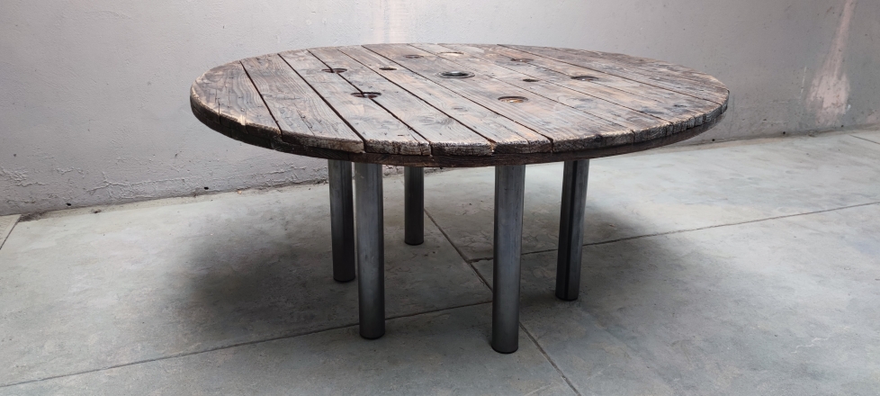 MESA COMUNITÁRIA REDONDA ANTIGA BOBINE