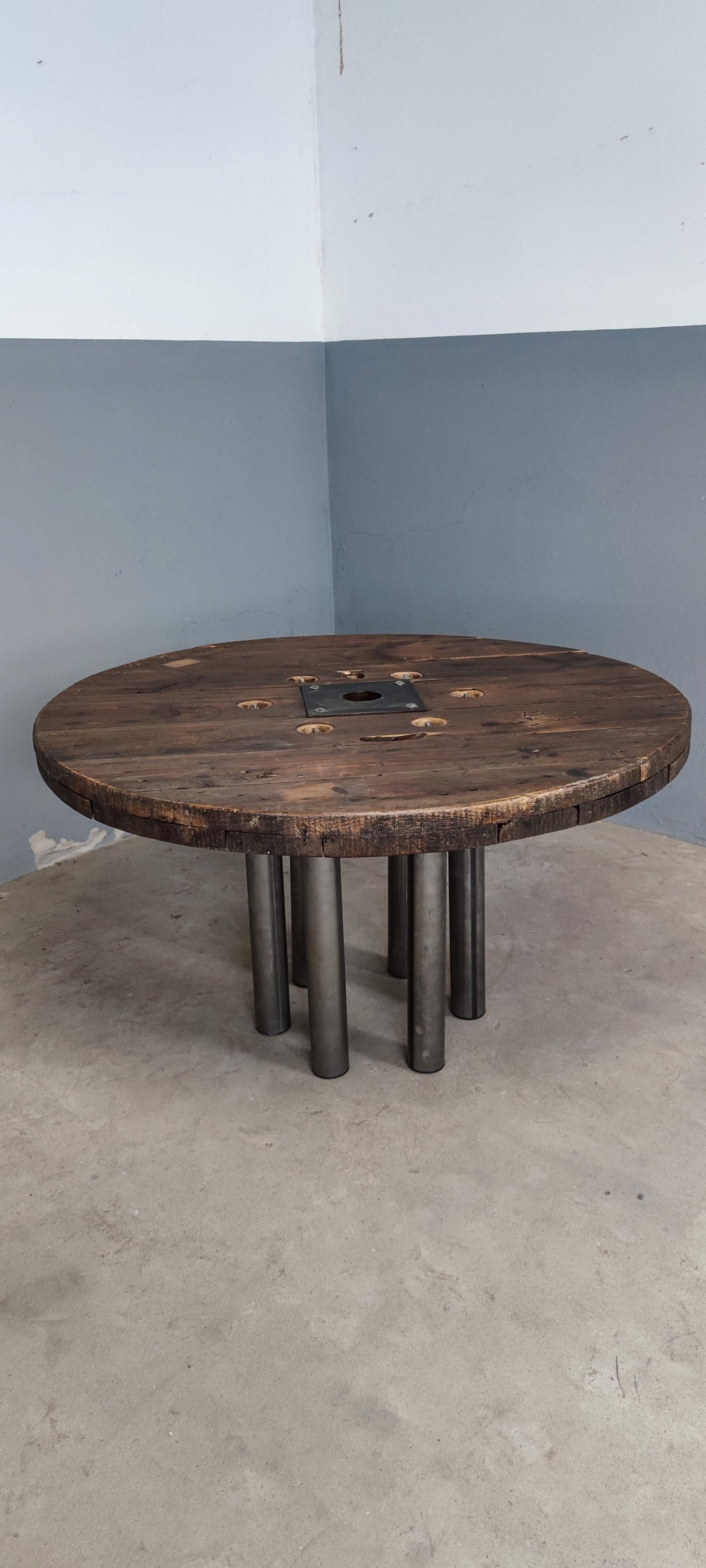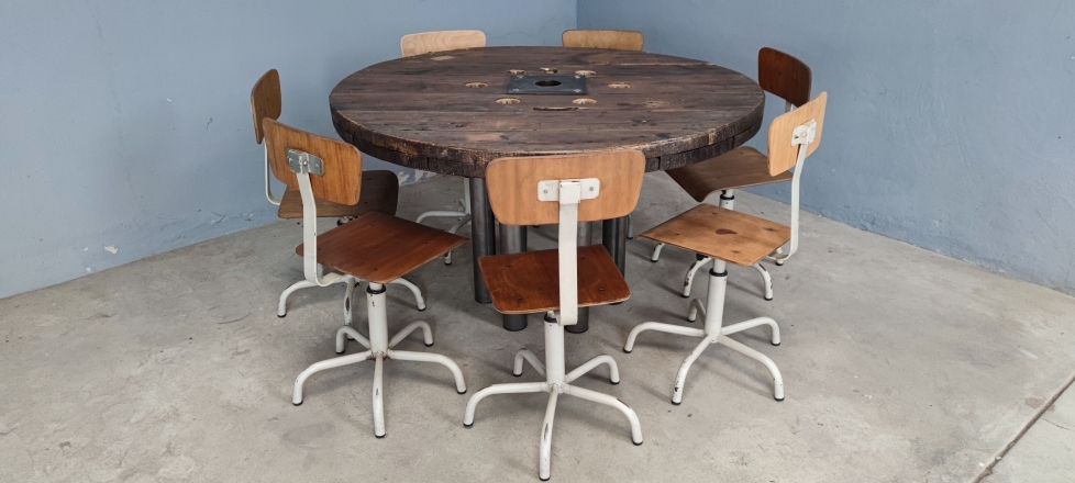 MESA COMUNITÁRIA REDONDA ANTIGA BOBINE