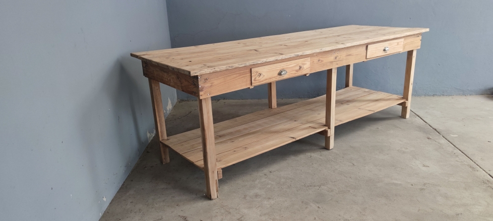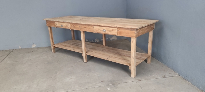 Mesa de trabalho de antigo alfaiate. Mesa em madeira de pinho natural.