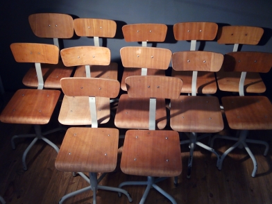 Cadeiras de operária fabril provenientes de uma antiga fabrica de calçado.
