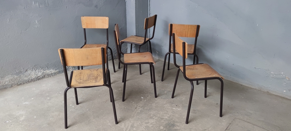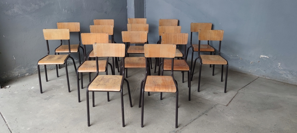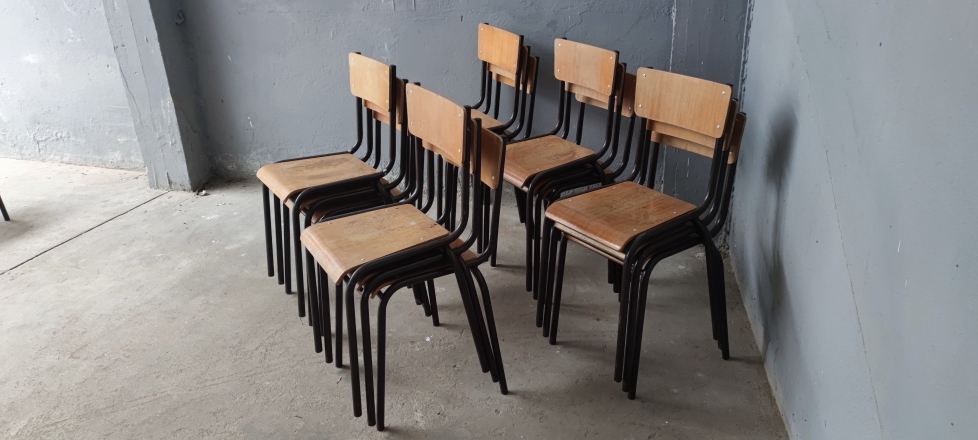 Lote de cadeiras vintage provenientes de antiga escola dos anos 70.