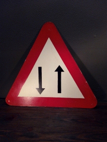 Antigo sinal proveniente do desmantelamento de escola de condução dos anos 60. Peça utilizada nas aulas de código. Produzido em tábua de madeira com pintura à mão. Excelente peça decorativa.